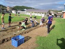 運動場の除草作業は7時から開始して、8時15分までがんばりました。朝からの作業でしたが、予想よりも涼しくなく、暑い中での作業となりました。事前に参加申し込みがあったのは、保護者の方29名、子どもたちは35名の合計64名でした。実際に参加された人数は、もう少し多かったかもしれません。たくさんの保護者の方々や子どもたちが熱心に作業をしたおかげで、運動場がすっきりしました。これで10月14日(土)の運動会も、いい運動場の状態で迎えられることでしょう。