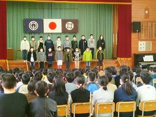 今日の2校時は卒業式練習の2回目でした。前回は全体の流れの確認と呼びかけ、今日は6年生の入退場と呼びかけ、歌の練習でした。先週の反省をもとにどの学年も練習にとり組み、ずいぶんよくなってきました。後は来週の予行練習ですが、23日が感動的な卒業式となるようにもう少し頑張りましょう。