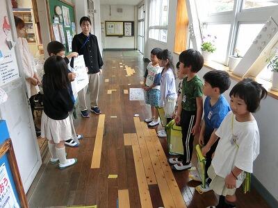 1年生はグループで学校のいろんな場所を回りました。それぞれの場所で説明してくれたのは2年生のみんなです。2年生はその場所の説明に加えて、〇✕クイズを出したり、1年生のカードにスタンプを押したりするなど、1年生のみんなが楽しく学校たんけんができるよう、お兄ちゃん、お姉ちゃんらしく工夫してくれました。説明も分かりやすくてとても上手でした。きっと1年生もどこにどんな場所があるのか、よく分かったと思います。