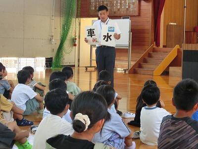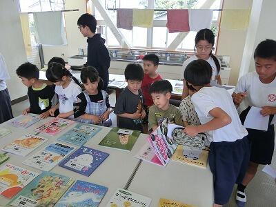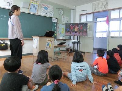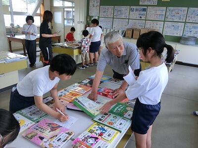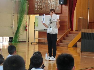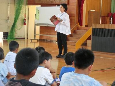 1・2年生のお友達に、お話しのおもしろさを伝えようと、延岡市立図書館司書の上村さん、橋口さんが川島小学校にいらっしゃいました。