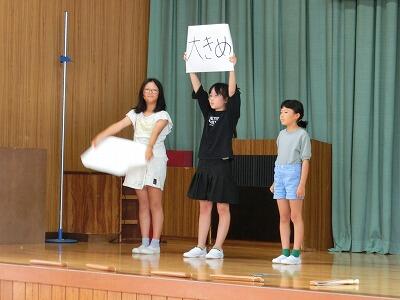 ことわざ劇では、コミカルな動きがとても面白かったです。大勢の前で演技するのはなかなか大変ですが、みんな臆せずのびのびと演じているところが素晴らしかったです。みんなのおかげでたくさんのことわざを知ることができました。