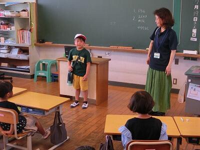 1・2年生とも、「くいしんぼうのおしょうさん」というお話でアニマシオンのウォーミングアップをしました。「何だ、簡単、簡単。」とか言っていましたが、「はい、これで練習は終わりです。」と次のステージが本番です。