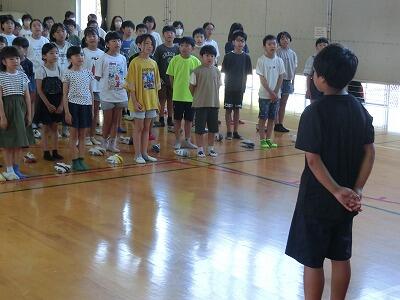 9月27日(金) 川島っ子タイムで運動会の応援練習を行いました。赤団、白団、それぞれ体育館と家庭科室に分かれて、団員へ応援の仕方が伝えられ、みんなで練習しました。手を上げたり、帽子を振ったりとどちらの団も工夫した応援を考えていました。これまで受け継がれた伝統的な応援に加えて、新しい応援もあるようです。低学年のみんなもリーダーの動きを見ながら楽しそうに練習していました。大きな声が出ていて見事な一体感でした。