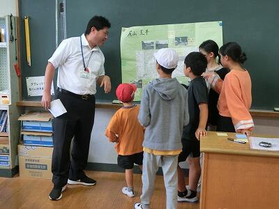 10月21日(月) 全校児童で安全マップづくりを行いました。地区ごとに教室に集まり、担当の教師と一緒にこれまでに作ったマップを使いながら、危ない場所を確認したり、新たにマップに付け加えることを話し合ったりしました。子ども達からは車や不審者、さらには動物など、いろいろな危険が指摘されていました。なかには自分の体験をもとに発表する子もいました。話合いを通じてどのように対応すればいいか確認することができました。これからも安全意識を高め、たった一つの大切な命をしっかりと守っていってほしいです。