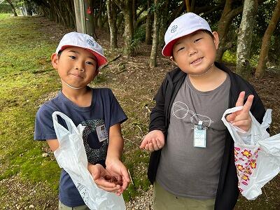 1・2年生は川島ふれあい公園に行きました。たくさんドングリを拾いました。