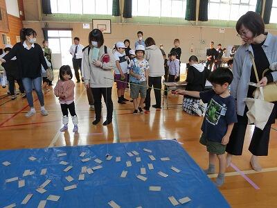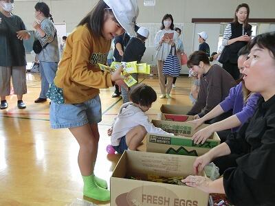 「射的で5発、当てました! すごいでしょ」「ほらっ、こんなにお菓子がとれました!」どの子に声をかけても、とても楽しそうに応えてくれました。中にはお菓子を袋いっぱいにしている子もいました。