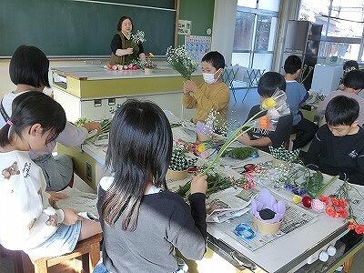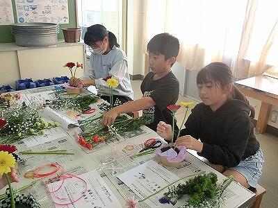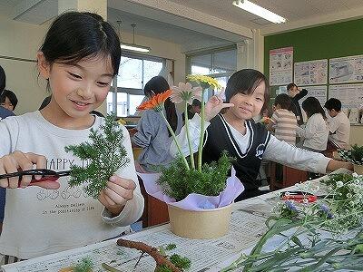 11月12日(火)3・4年生が花育体験活動を行い、フラワーアレンジメント作りに挑戦しました。