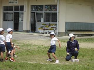 その後2年生は、スポーツテストのソフトボール投げの練習をしていました。