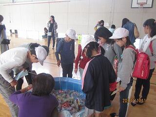 秋の遠足で3・4年生はリバーパル五ヶ瀬川学習館に行きました。水に関わる地球環境のお話や川、干潟の役割等、館員の方に詳しく丁寧に説明していただきました。