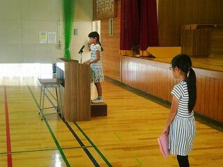 『5年生は、漢字の自学を覚えることを目標にその取組方を変えたこと、水泳、偏食の克服、宿題の取組に努力したと発表しました。』