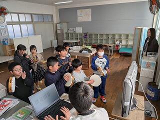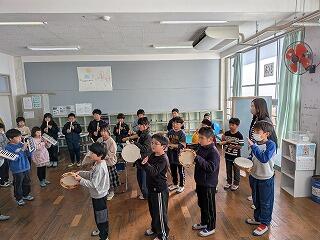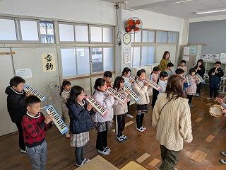 今日は、初めての合同練習だったようで、鍵盤ハーモニカ、リコーダー、打楽器のパート別練習の後、あわせてみました。音楽