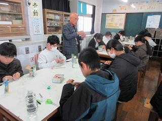 まずはじめに、ペットボトルを切り、プロペラの部分を作りました。最初は、パットボトルの種類によっては堅さももまちまちで戸惑いがみられましたが、さすが6年生。次々にプロペラの部分を完成させていき、モーターの部分を作成し始めました。