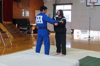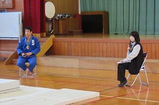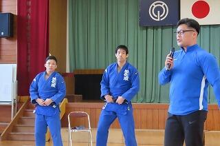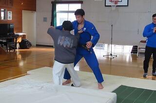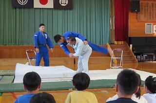 旭化成柔道部による出前授業の中の一コマです。