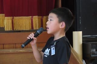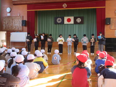 1週間延期になっていた全校朝会と給食感謝集会。ようやく今日行うことができました。笑う