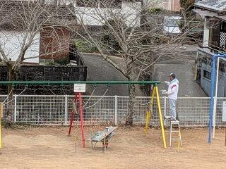 そこで、技術員さんが他の学校のブランコを調べてくださり、ようやく修理完了。それだけでも嬉しいのに、ペンキでリニュアル!!