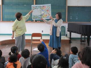 子どもたちが楽しみにしていた『ととろ三人の会』の皆さんによるお話会。