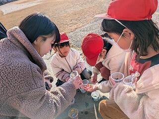 小さな手を真っ赤にしながら氷を触って遊ぶ子どもたちの可愛らしいこと。興奮・ヤッター!