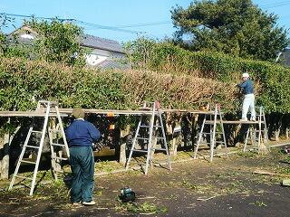 今日は市内の学校技術員9名の方々のご協力で、1日かけて木々の剪定をしていただきました。駐車場と隣家との垣根や校内のキンモクセイ、一つ葉等を綺麗に刈り込んでいただき、とてもさっぱり、すっきりとなりました。ありがとうございました。お疲れ様でした。