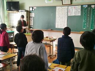『3年生は難しい文章を声を合わせて読み上げていました。』