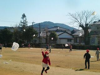 で元気に凧あげをしていました。若干風が弱いために苦労して