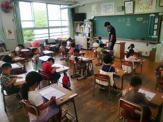 数人の先生方が見られる中、子どもたちはしっかりと授業