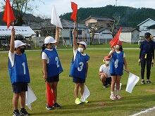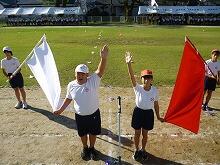 運動会当日は、4年生から6年生が、リーダー、出発合図、決勝審判、放送、出発準備、記録、用具準備、進行などの係になり運動会を運営してくれますが、今日の予行練習は、各係の子どもたちが自分の仕事を理解すること