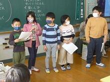 発表内容は、群読「自分の言葉で」、リコーダー演奏「もののけ姫」の2つでした。群読は声も大きく心のこもった読み方ができ、リコーダー演奏はみんなの心がひとつになって、すてきなハーモニーを奏でることができました。この日の発表を楽しみにしていた、4年生の保護者のみなさんがたくさん参観されました。