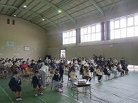 9月26日(月)は雨が降ってしまい、予定していた運動会に向けての全校体育は運動場でできませんでした。体育館でできる内容で全校体育を実施しました。運動会に向けての練習の1回目ということで、三連休明けでしたが、とても引き締まった表情でがんばっていました。
