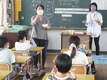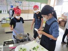 5年生の調理実習で、「ゆで野菜サラダ」を作りました。本校の土井 美佳栄養教諭の指導のもと、安全・安心に調理実習が進められました。