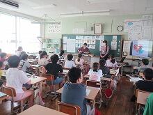濵田先生やアナ先生と楽しく会話しながら、自然と英語に慣れ親しむことができているようです。さらに、デジタル教科書も使用しながら、チャンツや歌でリズムよく英単語やローマ字を覚えていくことができています。この日は、6年生は、夏休みの思い出を英会話で紹介していきました。5年生は、今まで学習内容を使ってゲームをしていきました。外国語専科の先生やALTの先生のおかげで、より本格的な英語の発音や抑揚に触れることができ、川島小のお友達の英語力も確実にアップしていくことでしょう。