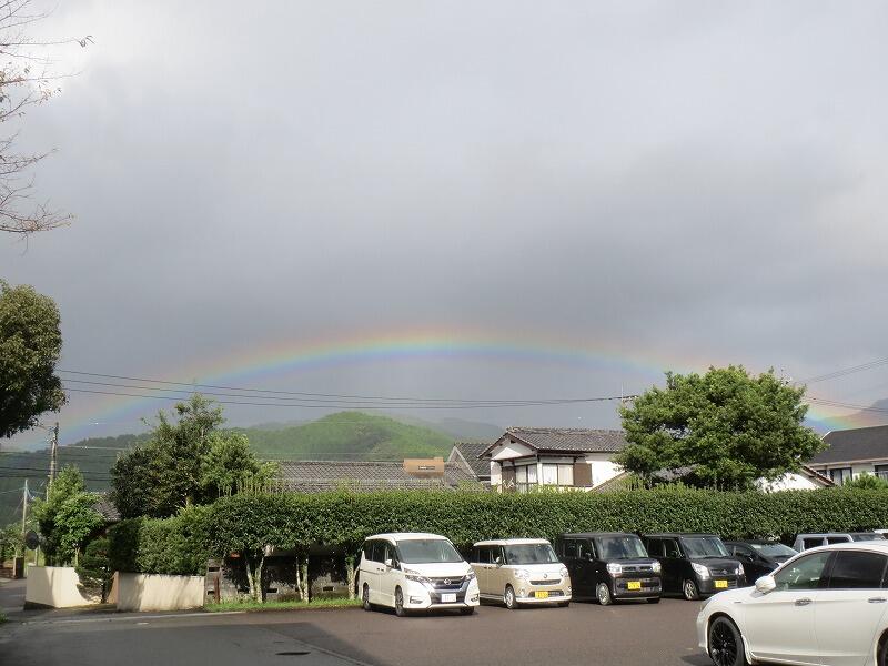 川島小学校の西の空に大きな虹ができていました。3年生のお友達がちょうど体育館に向かっていましたので、見ることができて感激していました。