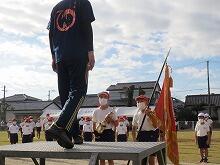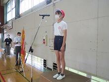 校長先生が団長に団旗を授与した後に、両団長による力強いあいさつがありました。