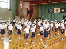 今回の練習は、特に開・閉会式の練習でした。みんなができるように練習することは、気を付けの姿勢、台に人が立ったらおへそを向けて話を聞くこと、礼や動き、声をそろえることです。それから、開・閉会式の放送担当、優勝旗・応援賞返還、児童代表あいさつ(1年生)、誓いのことば、運動会スローガン唱和、運動会を振り返って(6年生)などは、団長や代表の児童が練習していきました。第2回目の全校体育は、10月3日(月)です。やっぱり運動場で練習しないと、いろいろと分かりにくいところがあります。どうか雨が降りませんように。
