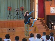 リボンの技の一つ、「ブーメラン」をみんなの前で実際に見せていただきました。「うわー、すげー。」みんな目をまん丸くしていました。