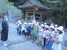 那智の滝の近くには、「如意輪寺」というお寺があります。そこで和尚さんに如意輪寺のことや那智の滝のことについて、くわしいお話を聞くことができました。また、お寺にある大きな鐘をついたり、お賽銭を入れて仏様にお願いをしたりしました。