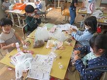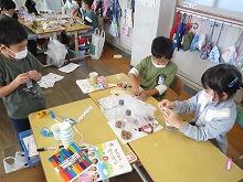 もうすぐ1年生の生活科では、おもちゃ祭りをします。今から、1年生のみんなで楽しいおもちゃを作っていきます。材料は、秋に身近で見つかるドングリや松ぼっくりなどを使います。さらに、お気に入りのビーズやお菓子の容器なども使って工夫して作ります。