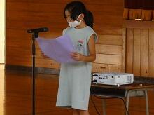 児童代表の作文は4年生の田島 綾乃(たじま あやの)さんが、2学期にがんばりたいことを3つ(学校と習い事の両立、宿題に力を入れること、読書)発表しました。
