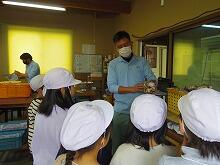 3年担任の陣先生は、そんな延岡の特産品の新タマネギの甘さを感じてほしいと思われていました。そこで、普通のタマネギと新タマネギをベーコンと合わせてスープにしたものを陣先生が用意して、3年生のお友達に味わってもらいました。