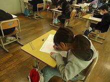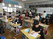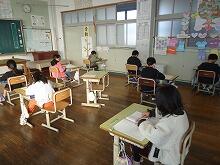 2校時の時間帯に全校一斉に行いますので、学校がシーンと静まりかえっていました。みんな集中して問題に取り組んでいます。60分間の時間設定がしてありましたが、ほとんどのお友達がギリギリに終わるような感じでした。