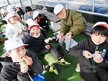 延岡市には、おいしい農産物がたくさんあります。特に有名なのが「空飛ぶ新タマネギ」です。3年生の教材園では、たくさんのタマネギが育っていました。毎日3年生のお友達が水やりをするなどして、心をこめてお世話したからです。