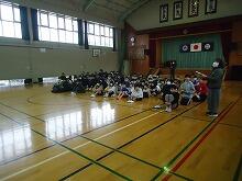 川島小学校には、ソフトボール少年団や野球少年団に所属しているお友達もいますので、グローブはとってもありがたいです。お披露目のときに、ソフトボール少年団の 松田 雄貴さん、宇戸田 陽さん、野球少年団の 松田 斗亜さん、そしてバドミントンクラブの 茂 琉翔さん(スポーツマンなのでキャッチボールもうまいんです。)にデモンストレーションでキャッチボールをしてもらいました。