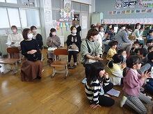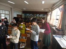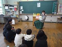 ととろ3人の会のみなさんに相談して、1月19日(金)にお話し会を催していただきました。山本さん、土井さん、田中さんの3名の方に音楽室に来ていただき、低・中・高学年に分かれて実施しました。