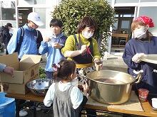 最後にできあがったもちを5年生とお手伝いいただいたみなさんで試食しました。臼や杵でついたおもちともちつき機でついたおもちの両方を食べていましたが、さて違いは分かったでしょうか?
