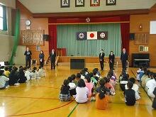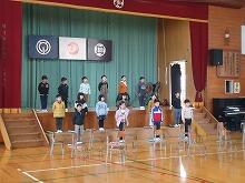 校歌斉唱では、6年生の福富彩耶さんの伴奏でみんなの元気な歌声が体育館に響きました。