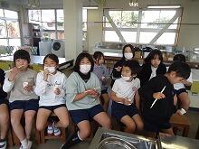 食後には、戸髙先生から磨き方を教えてもらいながら、みんなしっかりと歯みがきもできました。これからも健康な歯でおいしく給食を食べようね。