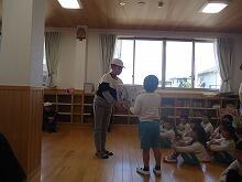 おかげで、いろんなことを体験して学ぶことができました。学級代表のお友達が実際の消防車の放水体験をしたり、順番に消防車両に乗って夜警をするつもりで運動場を回ったりしました。救急車の中の説明や重傷のときの救急搬送の体験をしたお友達もいました。