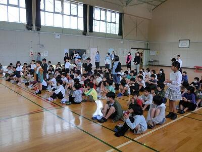 1・2年生とも、「くいしんぼうのおしょうさん」というお話でアニマシオンのウォーミングアップをしました。「何だ、簡単、簡単。」とか言っていましたが、「はい、これで練習は終わりです。」と次のステージが本番です。
