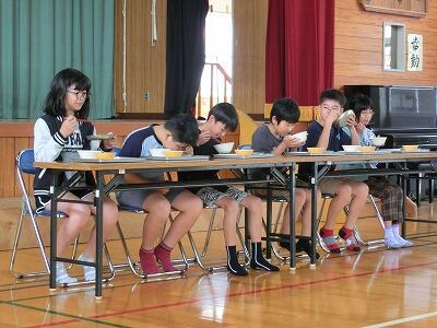 今日の給食は、明日からの学校生活のエネルギーになりました。みんなは思います、「明日のカレーうどんが楽しみだなあ」