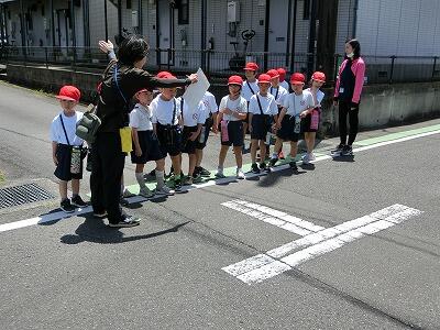 道路標識や津波避難場所などの表示など、いろんなことについて先生の説明を聞きながら、祐国寺やグループホームすまいるまで元気に歩きました。途中でウグイスの声を聞いたり、カニを見つけたりなど、身近な自然もたくさん感じることができましたね。