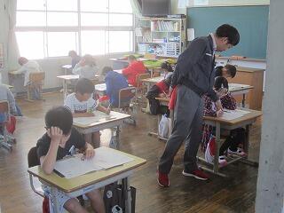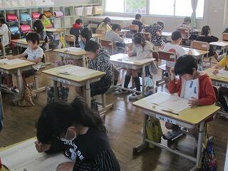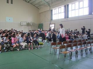 3年生は来年度時数も増える外国語活動の授業を保護者の方々に見ていただきました。一昨日同様、平日にもかかわらず今日もたくさんの保護者の方々に来校いただきました。